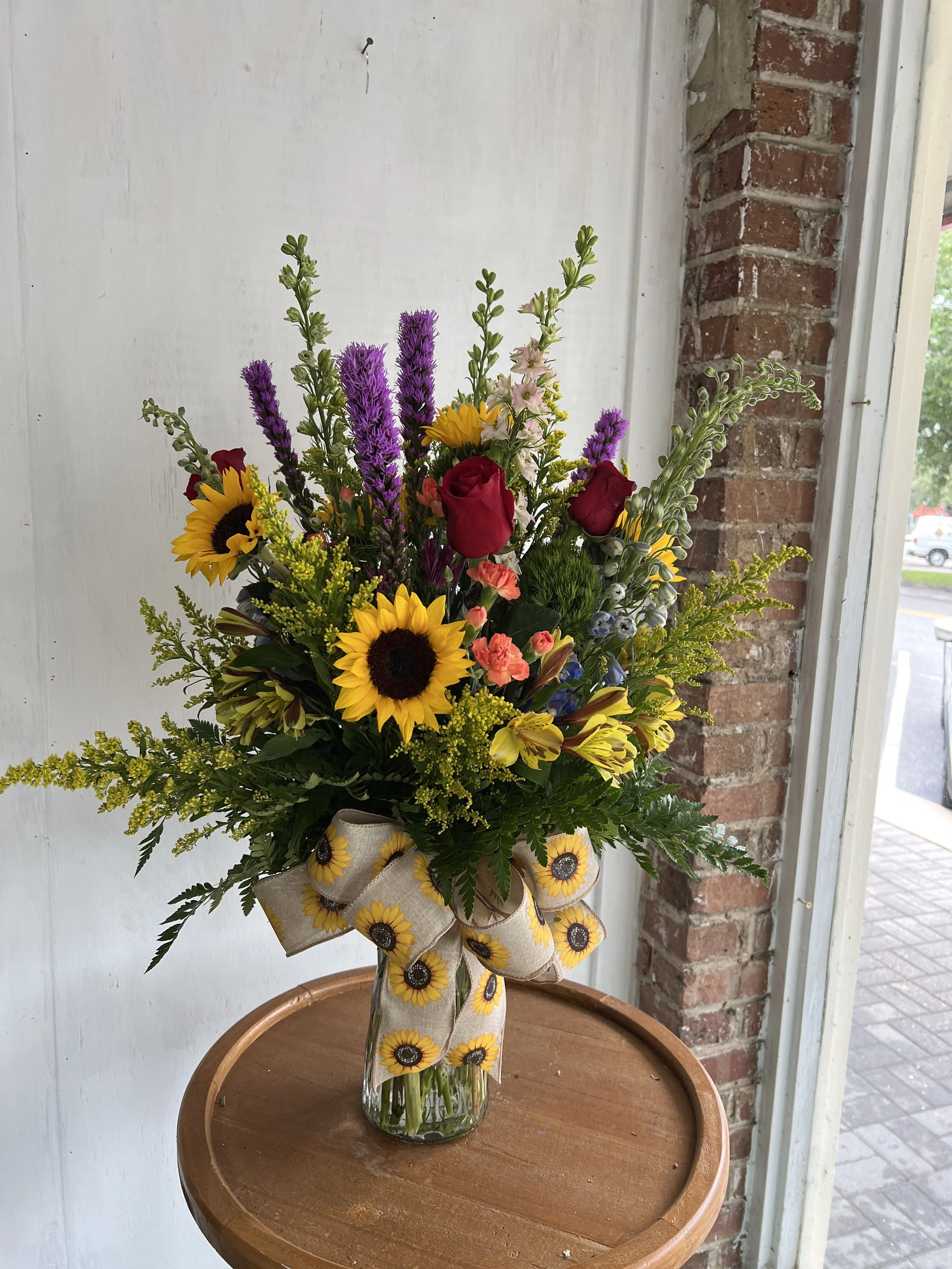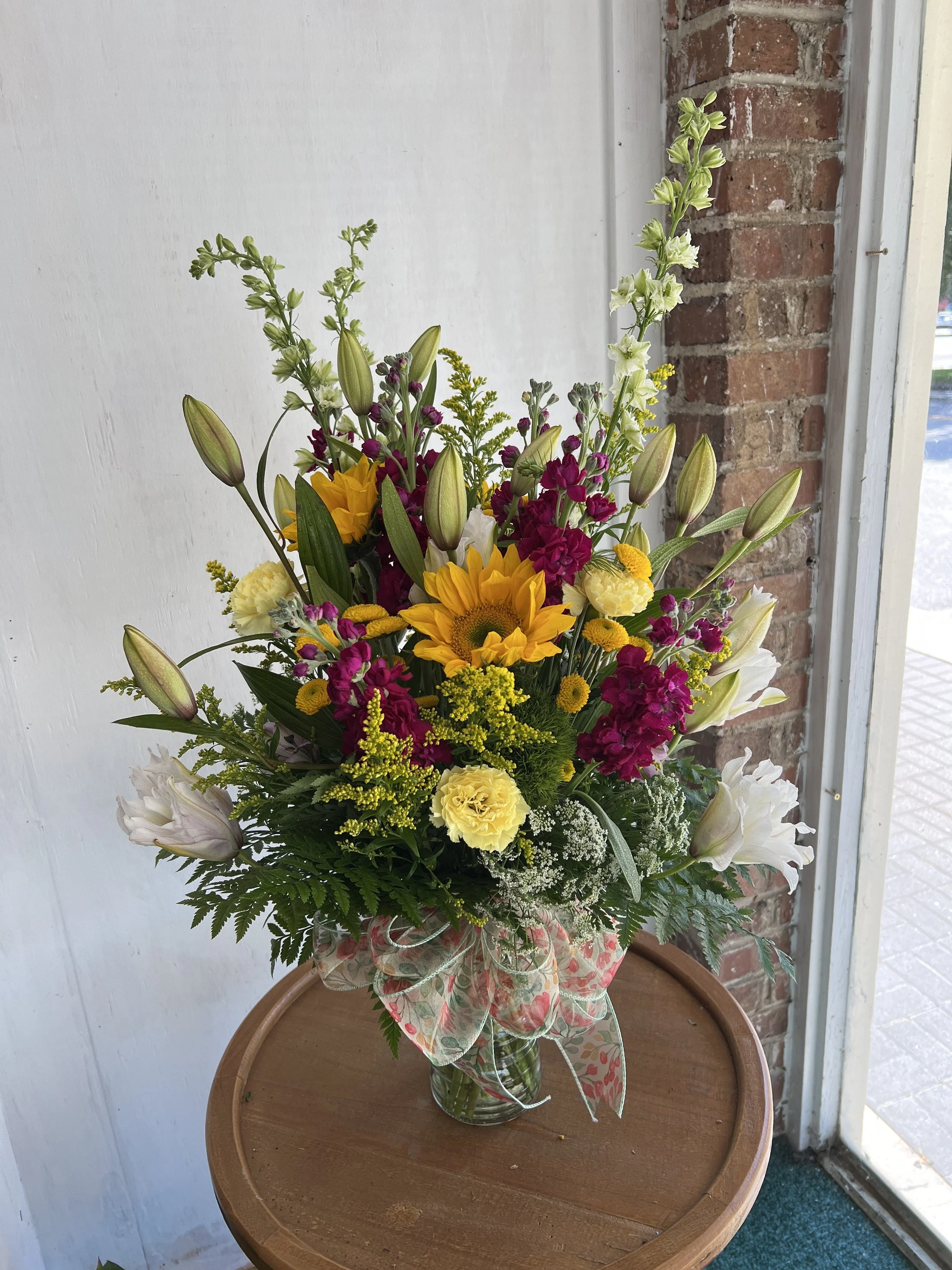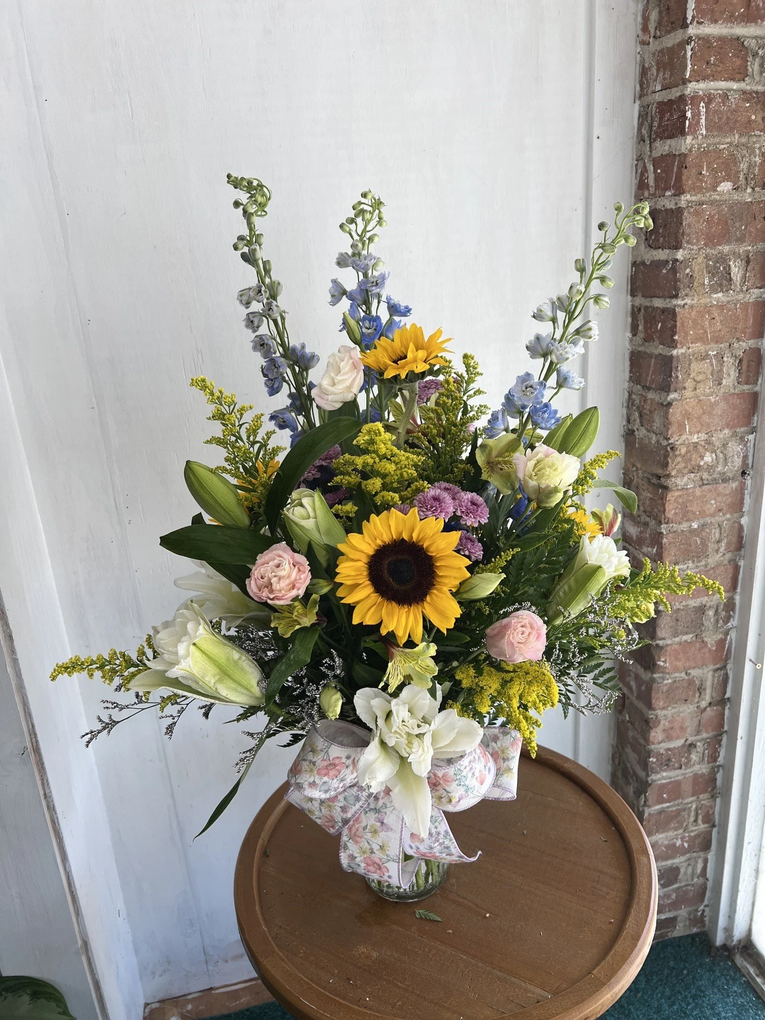 Arrangements Categories: All Arrangements Arrangements All | Arrangements | Touch of blue arrangement $125.00 Bright Mixture Arrangement $75.00 Sunflower and Rose Mix $100.00 Sunflower and lily mix $150.00 Soy Candle with a Mixed Arrangement on Top $45.00 Mason Jar 01 $35.00 Dozen Red Roses $79.00 Lily Mixture Arrangement $100.00 Sunflower Fall Mixture Arrangement $65.00 Sunflower Mix $45.00 Lily Mixed Arrangement $150.00 Cheerful Times $65.00 Dozen Yellow Rose Arrangement $79.00 Yellow and White Basket of Flowers $65.00 Dreamy Pastels $75.00 Sunflower Time $75.00 Spring Pastels $65.00 Cheerful Times $75.00 Half a Dozen Roses $45.00 Arrangement 34 $55.00 Arrangement 38 $175.00 Arrangment 31 $55.00 Arrangement 29 $100.00 Arrangement 16 $79.00 Arrangement 22 $69.00